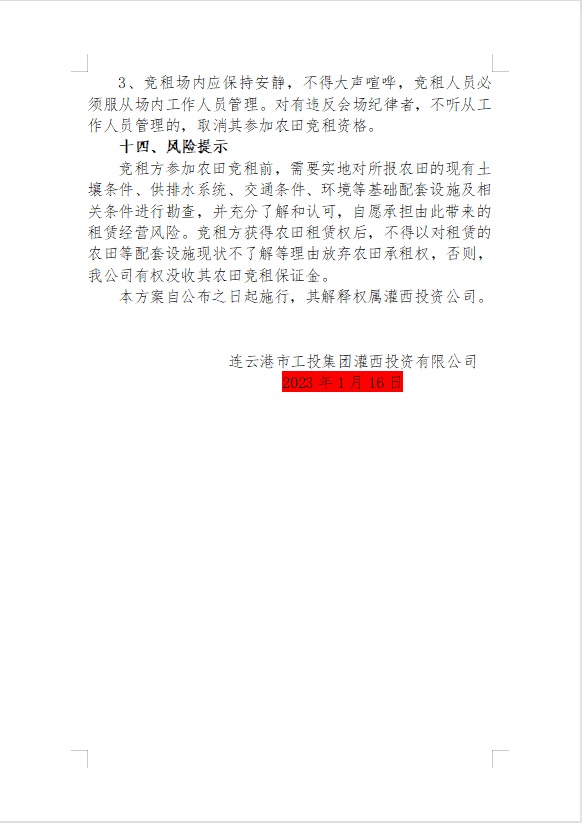 2023年灌西投資公司農(nóng)田公開(kāi)競(jìng)租公告