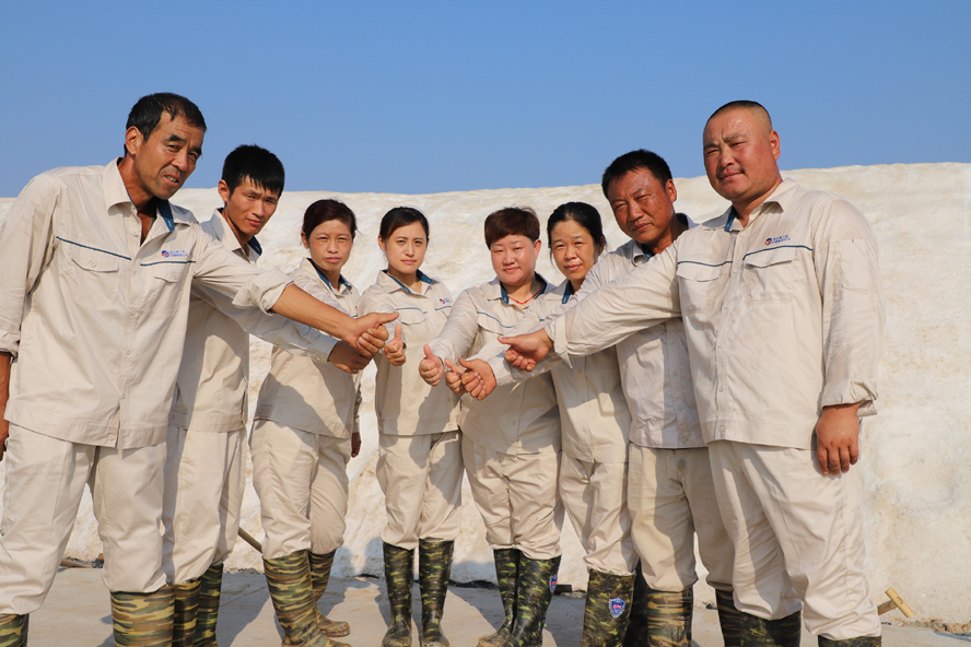 祝星星堅(jiān)守著軍人的優(yōu)良傳承,發(fā)揮一名共產(chǎn)黨員的忠誠信仰,在工作中奮力拼搏,創(chuàng)新爭優(yōu)。2017年,祝星星所在的八班被集團(tuán)選為食用原料鹽生產(chǎn)基地,要求灘容灘貌要有高標(biāo)準(zhǔn),要?jiǎng)?chuàng)新研究生產(chǎn)新工藝。如何才能生產(chǎn)出合格鹽?面對(duì)全新的課題和生產(chǎn)任務(wù),祝星星沒有打退堂鼓,他帶領(lǐng)班組全體員工,不怕吃苦、敢挑重?fù)?dān),在短短一年的時(shí)間里,使海水原料鹽結(jié)晶區(qū)灘地面貌煥然一新,全灘池堰無露土,條條上線,整齊劃一,灘地完好率達(dá)95%以上。為了提升鹽質(zhì),他研究海礦鹵參兌結(jié)晶新工藝,積極推行“傳統(tǒng)海鹽+新式工藝”生產(chǎn)模式,大力推進(jìn)“216”式單池加鹵法,科學(xué)調(diào)配海礦鹵水比例,完善鈣液除硫工藝,成功生產(chǎn)出合格的新品種鹽1.5萬噸,為打造生產(chǎn)優(yōu)質(zhì)的食用原料鹽生產(chǎn)基地奠定了堅(jiān)實(shí)的基礎(chǔ)。