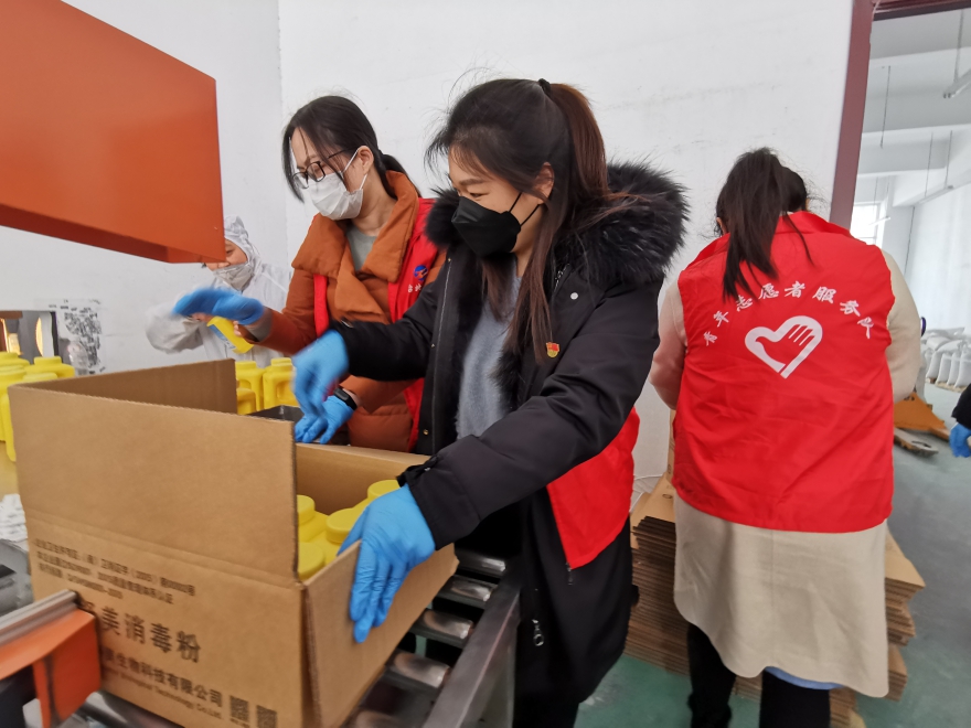 在得知美多利科創(chuàng)園入園企業(yè)永榮生物公司有一批緊急運往武漢的消毒粉訂單,工人緊缺的信息,臺北公司青年突擊隊第一時間奔赴生產(chǎn)現(xiàn)場,“發(fā)放、裝車、運輸”,分工合作,保證效率,確保產(chǎn)品及時發(fā)送,助力戰(zhàn)“疫”一線。