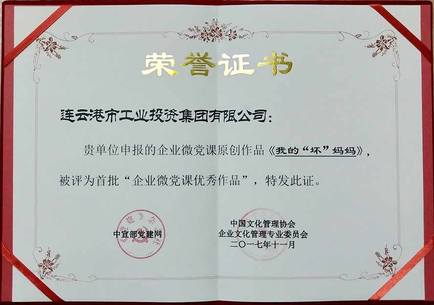 日前,在杭州舉辦的“2017中國文化管理協(xié)會企業(yè)文化管理年會暨企業(yè)文化學(xué)習(xí)實(shí)踐分享會”上,集團(tuán)公司拍攝的微電影《我的“壞媽媽”》被中共中央宣傳部黨建網(wǎng)等機(jī)構(gòu)評為首批“企業(yè)微黨課”優(yōu)秀作品和第四屆“最美企業(yè)之聲”之《最美先鋒之聲》金獎代言作品。連云港市華茂綠化工程有限公司還被予“企業(yè)黨建文化十強(qiáng)單位”榮譽(yù)稱號。
