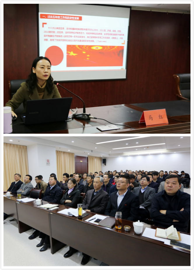 本場(chǎng)報(bào)告會(huì)邀請(qǐng)市委黨校沿海開(kāi)發(fā)研究室副教授馬紅主講。馬紅教授以《不忘初心,牢記使命,為實(shí)現(xiàn)中華名族偉大復(fù)興的中國(guó)夢(mèng)不懈奮斗!》為主題,從鮮明主題、歷史性變革、主要矛盾的深淵影響、兩個(gè)一百年奮斗目標(biāo)、全面從嚴(yán)治黨等13個(gè)方面出發(fā),引用了古今中外大量案例,配合通俗的語(yǔ)言和生動(dòng)的幻燈片,系統(tǒng)而詳實(shí)地向在座黨員介紹了“黨的十九大報(bào)告”精神與內(nèi)涵,并結(jié)合經(jīng)濟(jì)建設(shè)的相關(guān)內(nèi)容,給我公司的發(fā)展提出了寶貴意見(jiàn)。