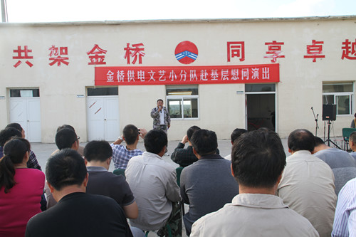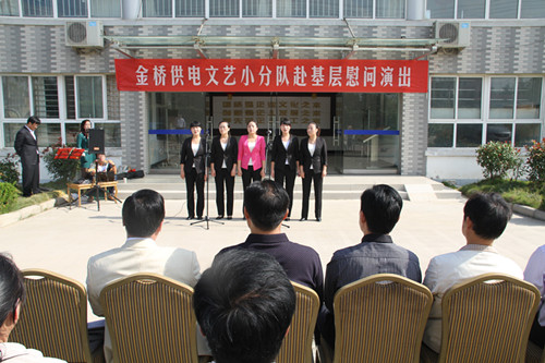 近日,為慶祝建國(guó)65周年,進(jìn)一步踐行黨的群眾路線(xiàn),豐富基層職工文化生活,公司工會(huì)組織文藝小分隊(duì)深入供電所等基層單位巡回慰問(wèn)演出,為一線(xiàn)職工送去精彩紛呈的“文化大餐”,贏得了基層職工群眾一致好評(píng)。 在臨時(shí)搭建的舞臺(tái)上,文藝小分隊(duì)自編自演的的歌舞、相聲、詩(shī)朗誦、器樂(lè)彈唱等豐富多彩的節(jié)目,貼近基層,貼近生活,謳歌金橋供電十年成就,展示金橋供電職工風(fēng)采,贏得了現(xiàn)場(chǎng)觀(guān)眾陣陣掌聲。中間還穿插了擊鼓傳花觀(guān)眾互動(dòng)節(jié)目,基層職工踴躍參與,氣氛活躍。最后,演出在會(huì)場(chǎng)全體人員齊唱《歌唱祖國(guó)》中圓滿(mǎn)落下帷幕。 公司自成立以來(lái),一直注重企業(yè)文化建設(shè),利用多種形式活躍基層文化生活,滿(mǎn)足員工多層次、多角度的精神需求。不僅加強(qiáng)基層單位“職工小家”建設(shè),建立了“職工書(shū)屋”、職工活動(dòng)室、乒乓球室、羽毛球活動(dòng)場(chǎng)地等基礎(chǔ)設(shè)施,還舉辦了職工運(yùn)動(dòng)會(huì)、籃球賽和文藝演出等活動(dòng)。不僅發(fā)揮傳統(tǒng)職工文化活動(dòng)的優(yōu)勢(shì),而且還創(chuàng)新具有時(shí)代特色文化活動(dòng)的形式,不斷增強(qiáng)員工的凝聚力和向心力。通過(guò)本次深入基層慰問(wèn)演出,不僅為戰(zhàn)斗在一線(xiàn)的基層職工獻(xiàn)上一份精神“大餐”,同時(shí)也展示了金橋供電的良好作風(fēng)和企業(yè)形象。(趙艷)