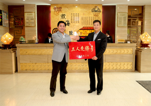 五一前夕,集團(tuán)公司董事長、黨委書記顧永庚向榮獲2014年度江蘇省“工人先鋒號(hào)”榮譽(yù)稱號(hào)的公司淮鹽大酒店授牌。顧董事長勉勵(lì)淮鹽大酒店全體員工繼續(xù)發(fā)揚(yáng)這種爭創(chuàng)一流的巨大熱情和無窮智慧,珍惜榮譽(yù)再創(chuàng)佳績,繼續(xù)擔(dān)當(dāng)服務(wù)行業(yè)的領(lǐng)跑者。這是淮鹽大酒店獲得2013年連云港市“工人先鋒號(hào)”和2012年連云港市“五一巾幗標(biāo)兵崗”后又一榮譽(yù)。