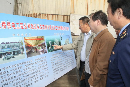 在巨龍農(nóng)貿(mào)市場,范總向秦國丞副秘長簡要匯報了巨龍農(nóng)貿(mào)市場的基本情況以及改造方案,通過改造實現(xiàn)市場空間布局合理化、設(shè)施建設(shè)標準化、長效菅理規(guī)范化的總體目標。秦國丞副秘書長對公司巨龍農(nóng)貿(mào)市場的改造方案給予較高評價,充分肯定了公司在創(chuàng)建國家文明衛(wèi)生城市、加強我市菜藍子工程建設(shè)、提升群眾幸福指數(shù)方面作出的貢獻;同時,要求我公司繼續(xù)深入調(diào)研,盡快制定具體實施方案,報政府部門審批;并指示隨行的有關(guān)部門人員,要給予全力配合,對改善民生工程開綠燈。(司宣 盧正清)