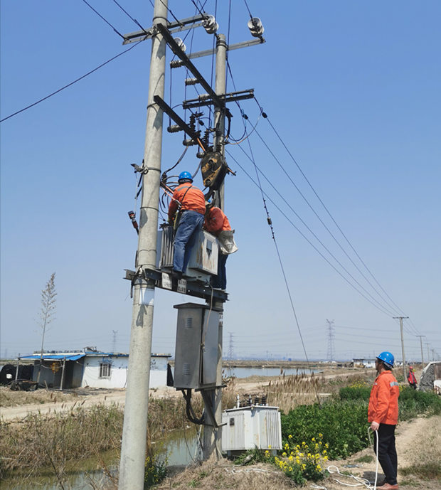 近年來,淡水養(yǎng)殖不斷擴大高密度養(yǎng)殖規(guī)模,充氧設備逐漸增加,夏季高溫臺變用電負荷大增,養(yǎng)殖區(qū)部分變壓器不堪重負。為了保障廣大養(yǎng)殖用戶生產(chǎn)生活用電,確保供電設備經(jīng)得起高溫負荷的“烤”驗。當天上午八點半,在辦理好相關(guān)停電手續(xù),停電、驗電、安裝接地線、安全交底等各項準備工作的基礎上,在組長余榮欣的統(tǒng)一指揮下全組人員克服困難開始拆除舊變壓器,吊離變壓器,安裝新變壓器……經(jīng)過近5個小時奮戰(zhàn),順利完成2處變壓器更換安裝工作任務,提前做好迎峰度夏“保衛(wèi)”工作。