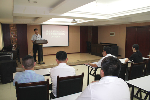 安全宣教一著不讓。該酒店組織全體員工觀看安全事故教育警示片,宣傳安全生產知識,提高員工安全生產意識,營造“安全生產月”濃厚氛圍?;顒悠陂g,共召開安全會議2次,下發(fā)文件2份,集中安全培訓2次,開展消防應急演練1次。