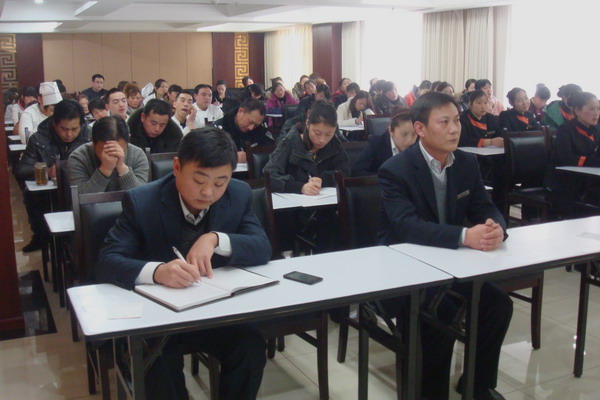 2月23日星期六,淮鹽大酒店組織全體員工,進行素質(zhì)培訓(xùn)。23日下午兩點,為提高酒店全體員工素質(zhì),給客人提供更加優(yōu)質(zhì)的服務(wù),樹立酒店良好的口碑,贏得更多的客戶,該酒店按照特別準備的詳細培訓(xùn)計劃,對全體員工進行“酒店員工基本素質(zhì)培訓(xùn)”。酒店總經(jīng)理伏運余、總經(jīng)理助理徐園園和餐飲總監(jiān)陳明生與員工一起參加了培訓(xùn)。(董淑娟)