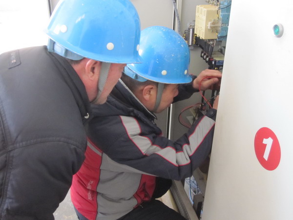 圖為工人們在進行現(xiàn)場檢查 針對青口鹽場揚水工對開關柜工作原理了解甚少的情況,青口供電所利用時下正值揚水淡季之機,主動到泵站現(xiàn)場,為揚水工詳細講解開關柜的工作原理,并對開關柜是否存在隱患進行檢查。(宋中文)