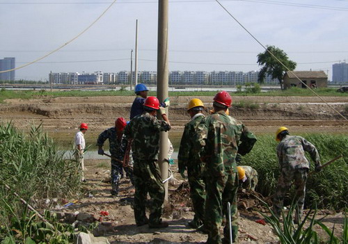 8月1日,臺北供電所職工冒著高溫酷暑,架設線路,安裝變壓器,為100戶居民解憂除困。