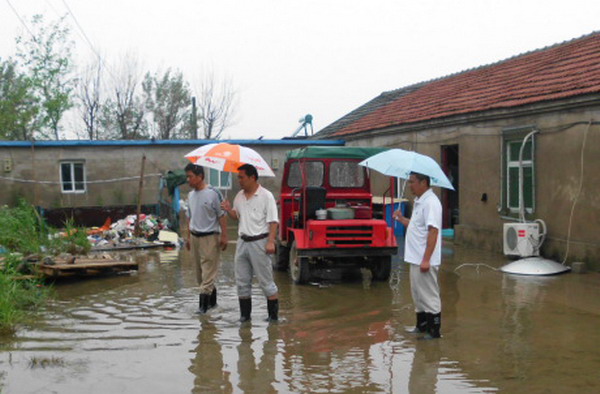 7月9日上午一上班,宋跳農(nóng)場(chǎng)場(chǎng)長(zhǎng)趙懷忠?guī)ьI(lǐng)任志明、駱功勛、孫習(xí)年、于懷前等同志檢查場(chǎng)區(qū)和居民區(qū)。在整個(gè)暴雨過(guò)程中,居民區(qū)房屋沒有發(fā)生險(xiǎn)情,但地面積水較多,對(duì)個(gè)別居民用電不符合規(guī)范的,要求立即整改。清源水泥制品廠的石棉瓦大棚局部有坍塌危險(xiǎn),該場(chǎng)當(dāng)時(shí)就下發(fā)整改通知單,限期7月20日前完成。農(nóng)戶棉花地局部受淹,農(nóng)田積水于當(dāng)天下午基本排掉。場(chǎng)區(qū)基本沒有積水,但辦公室在暴雨過(guò)程中有漫水現(xiàn)象。職工上班后,清掃辦公室衛(wèi)生,陸續(xù)恢復(fù)正常辦公。(任志明)