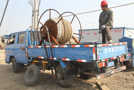 該所在承接的金海拋填工程供電線路架線中,首次遇到使用直徑240毫米的大導(dǎo)線,與原來施工中架設(shè)的導(dǎo)線50毫米相比,放線過程施工難度明顯加大。施工初期,他們沿用過去的放線設(shè)備,采取集中眾多人力、肩扛人拉的辦法,不僅職工勞動(dòng)強(qiáng)度大,而且施工進(jìn)度緩慢。