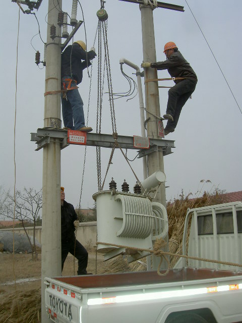 春節(jié)前夕,徐圩供電所加大電力設(shè)備和線路巡視維護(hù)力度,將預(yù)防大面積停電事故作為節(jié)前安全生產(chǎn)的首要任務(wù)。該所認(rèn)真組織人員深入轄區(qū)查找線路和設(shè)備存在的安全隱患,提前作好安排和準(zhǔn)備,2月5日發(fā)現(xiàn)辛高圩地區(qū)99#變壓器節(jié)日期間容量可能不夠,便及時(shí)調(diào)換了變壓器,確保用電安全。(圖為該所職工在調(diào)換變壓器)(馬德松)