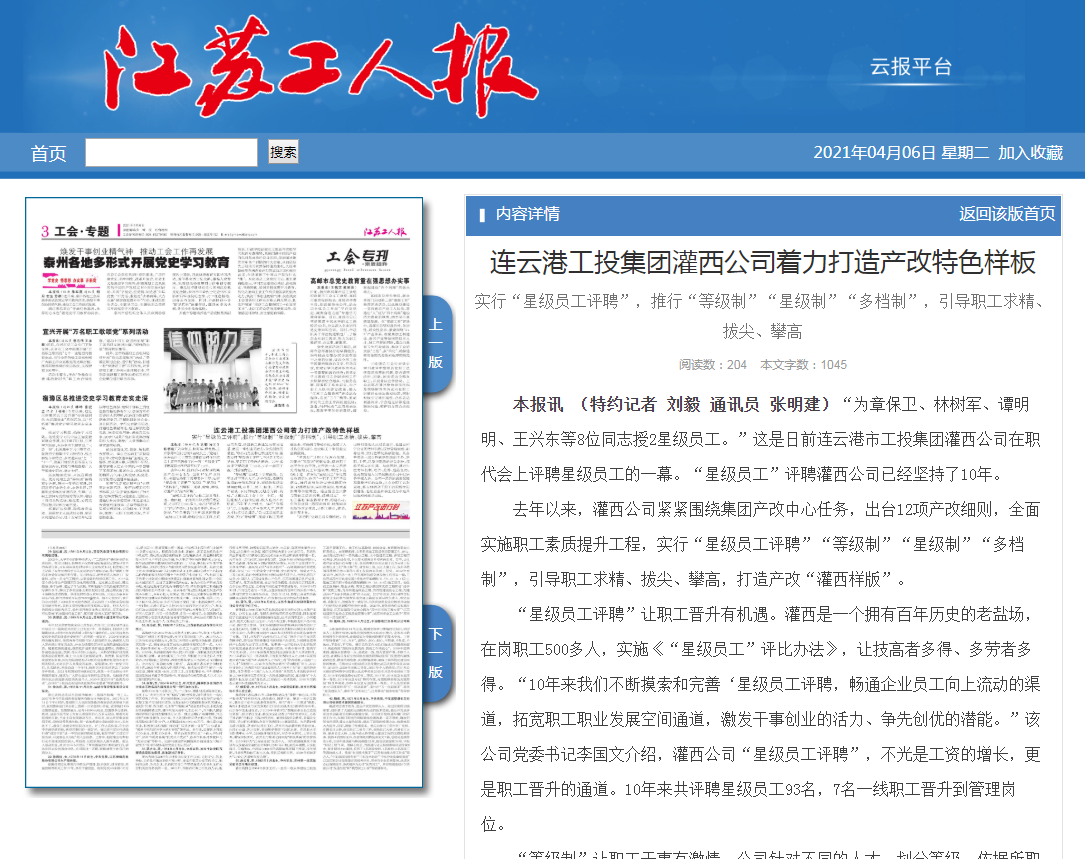 “星級員工評聘”讓職工晉升有機遇。灌西是一個擁有百年歷史的老鹽場,在崗職工500多人,實施《“星級員工”評比辦法》,讓技高者多得、多勞者多得。“10年來我們不斷摸索和完善‘星級員工評聘,暢通企業(yè)員工向上流動的渠道,拓寬職工職業(yè)發(fā)展空間通道,激發(fā)干事創(chuàng)業(yè)的活力、爭先創(chuàng)優(yōu)的潛能?!痹摴军h委書記李國文介紹,灌西公司“星級員工評聘”,不光是工資的增長,更是職工晉升的通道。10年來共評聘星級員工93名,7名一線職工晉升到管理崗位。