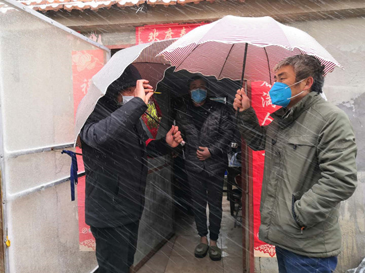 天氣惡劣,擋不住黨員干部誓與疫情作斗爭的腳步;風雪雖冷,凍不住抗疫情一線工作者的斗志!他們夜以繼日默默堅守、風雪之中砥礪前行,必將打贏這場疫情防控狙擊戰(zhàn)!(邱利民)