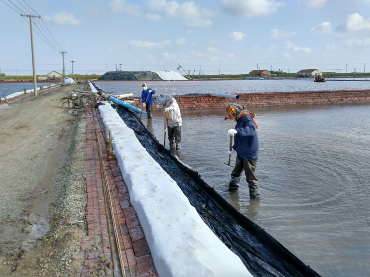 國慶假日前兩天的連天雨,讓大家好不容易盼來的七天長假打了折扣,人們走親訪友出行旅游都帶來了不便,七十多毫米的降雨量也影響到了公司鹽業(yè)生產(chǎn),廣大員工堅(jiān)守崗位值好班。生產(chǎn)服務(wù)人員24小時觀察天氣狀況,跟蹤分析發(fā)布天氣預(yù)報,指導(dǎo)生產(chǎn),各班組鹽工堅(jiān)守崗位,加強(qiáng)塑池管理,檢查排淡口門,及時排出淡水。3號天氣轉(zhuǎn)好,廣大鹽工及時收布,整理塑池,轉(zhuǎn)換到正常生產(chǎn)管理中來。同時,啟動扒鹽工作,安裝機(jī)泵管道,調(diào)配扒鹽鹵水,嚴(yán)格執(zhí)行安全扒鹽操作規(guī)程,3日晚開始投入到正常的扒鹽中來。鹽灘上勞作的鹽工在一條條潔白的鹽廩襯映下格外美麗。(季興勝)