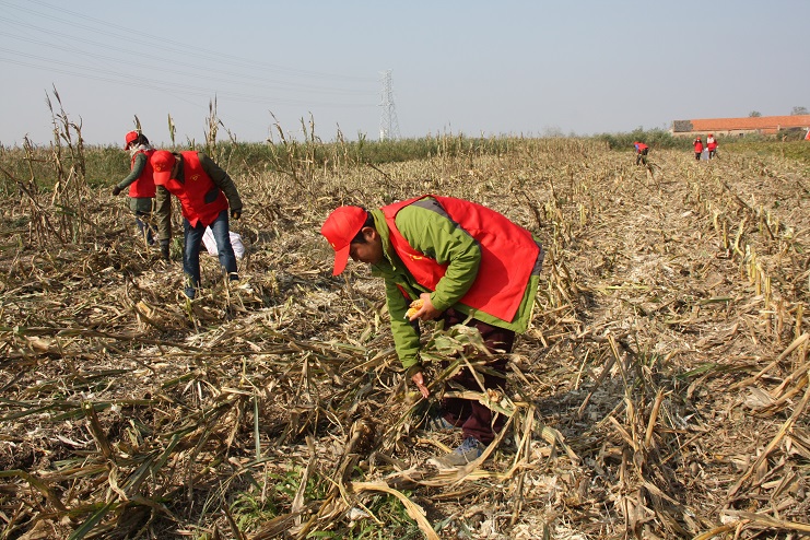 目前,位于柴門居民點附近的灌西實業(yè)公司農田已進入作物收獲期,由于所種玉米已經完全成熟,且經歷了一次大風降溫天氣,所以在機械進場作業(yè)前,有部分玉米已經掉落在了地上,如不及時撿拾,將造成極大浪費。公司團委在得知這一消息后,立即組織近十名青年志愿者利用中午休息時間,到該公司農田開展撿拾散落玉米志愿服務活動。活動中,大家手拿編織袋,排成橫排仔細搜尋并緩慢向前推進。由于玉米皮與秸稈顏色相近且混雜在一起很難分辨,因此大家在撿拾過程中不僅需要認真搜尋,有時還需要彎腰翻動秸稈,以最大限度的不遺漏任何一個散落的玉米。