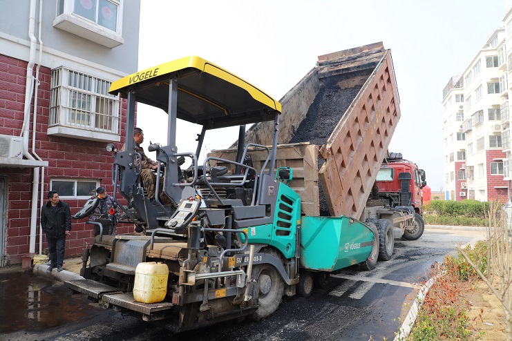 在工程現(xiàn)場,機(jī)械轟鳴聲吸引了小區(qū)內(nèi)眾多居民駐足觀看,他們親歷著小區(qū)的舊貌換新顏。施工中,噴淋式灑油車首先在路面上灑上一層油,隨后,冒著熱氣的瀝青從工程車上緩緩“淌”入瀝青混凝土攤鋪機(jī),接著雙鋼輪震動(dòng)壓路機(jī)、輪胎式壓路機(jī)依次上場,轉(zhuǎn)眼間,原來的水泥路面上就鋪上了平整的瀝青,再配合上去年完成的小區(qū)綠化工程,使小區(qū)的整個(gè)環(huán)境瞬間提高了一個(gè)檔次,不經(jīng)意間還以為身處市區(qū)之中。