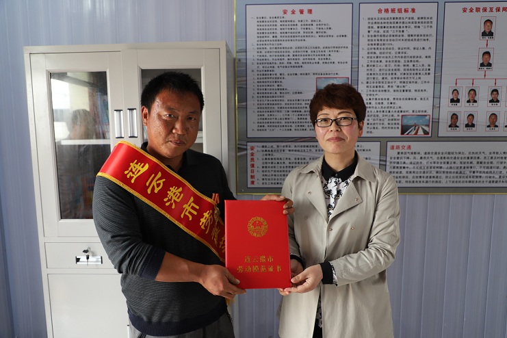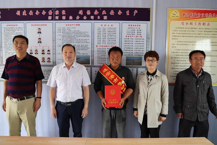 5月22日下午,公司董事長(zhǎng)、黨委書(shū)記李國(guó)文、紀(jì)委書(shū)記、工會(huì)主席王宏一行到新河制鹽分公司八班為獲得連云港市勞動(dòng)模范的祝星星綬帶佩章。