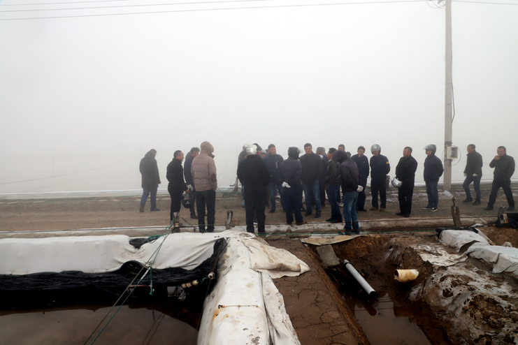 會前,與會人員一起現(xiàn)場參觀了埒南制鹽分公司9班的池道堰格,對硫酸鈣清理和土塘清淤工作作現(xiàn)場指導說明,隨后在生產(chǎn)服務公司會議室召開冬準動員大會,會議對冬準工作進行了全面部署,副總經(jīng)理古浩光對冬準工作提出要求,副總經(jīng)理張學峰宣讀了表彰“秋扒”工作先進機組先進個人和安全質(zhì)量標兵的決定,紀委書記、工會主席王宏宣讀了關于開展“大干冬準勞動競賽”活動方案,新河、埒南制鹽分公司四名班組長就如何干好冬準工作分別作表態(tài)發(fā)言。