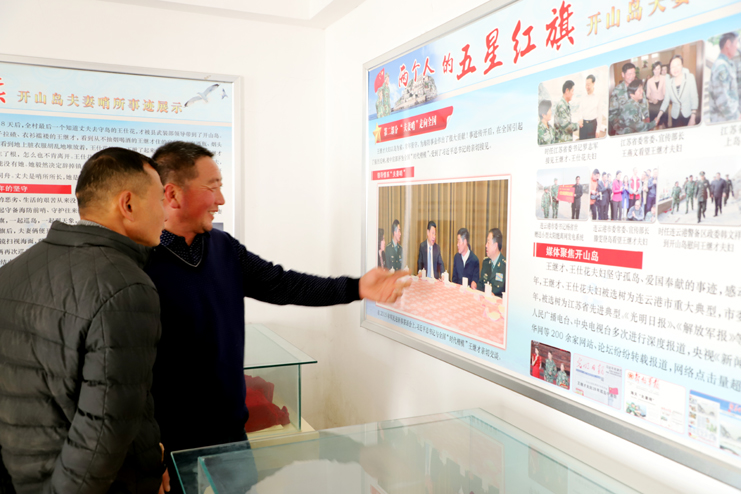上午8點(diǎn),在發(fā)動(dòng)機(jī)巨大的轟鳴聲中,漁船緩緩駛離港口。近一個(gè)小時(shí)的顛簸,開山島出現(xiàn)在了視野里,由小到大,逐漸清晰。簡(jiǎn)易碼頭上,守島民兵遠(yuǎn)遠(yuǎn)地沖著大家揮手,船上的人顧不上漁船的劇烈晃動(dòng),一個(gè)個(gè)扒著船沿?zé)崆榛貞?yīng)著,所有人的臉上都寫滿敬意和期待。漁船隨著海浪的節(jié)拍上下晃動(dòng)著,班組長(zhǎng)們登上碼頭,就緊緊握住守島民兵的手,對(duì)他們守島衛(wèi)國(guó),無怨無悔堅(jiān)守和付出的愛國(guó)奉獻(xiàn)精神表示欽佩。班組長(zhǎng)們跟隨著守島民兵沿著王繼才夫婦他們當(dāng)年的巡邏路線,拾級(jí)而上,大家一邊感受巡島爬山的辛苦,一邊聆聽著守島民兵講解王繼才夫婦32年守島的艱難困苦和生離死別。