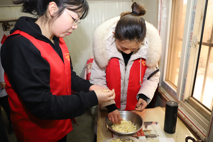 九點半,志愿者們來到中二圩社區(qū)新建點邱長松家,邱老跟老伴正在揀黃豆芽,準備中午的飯菜。看到志愿者們的到來,兩位老人熱情地迎出門來,招呼我們進屋,我們來到房間里,映入眼簾的是一張老式的八仙桌擺在室內的一角,整個房間里擺設很簡單,可以看出來老人的艱苦樸素、勤儉節(jié)約的生活作風。志愿者和老兩口拉起家常,詢問身體狀況和生活困難,并幫著大爺大媽揀黃豆芽。“我身體沒有什么大毛病,就是年歲大了,行動不方便,小孩都不在身邊,要感謝志愿者來看我們老兩口”,邱大爺誠懇的話語表達著心里的感謝。醫(yī)療志愿者為邱大爺跟老伴做了身體的簡單檢查,這時從外面走來幾位剛買完菜路過的大嬸、大媽們,她們聽說有醫(yī)療志愿者在邱大爺家,也紛紛過來讓志愿者醫(yī)療隊的醫(yī)生查查身體,“我家就住在隔壁,聽說有志愿者醫(yī)療隊來,我就想過來讓醫(yī)生幫我量量血壓,最近血壓或高或低的”,“剛在街上買菜回來,路過這,看都穿灌西志愿者紅馬甲,我就進來看看的,正好醫(yī)療隊在,我也給醫(yī)生查查看看。”大嬸、大媽們熱情的表達。