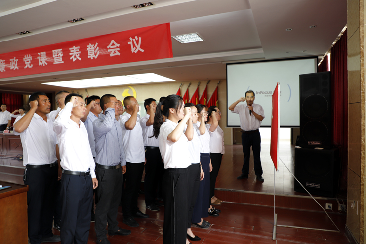 黨委書記、董事長、總經(jīng)理李國文以《全面從嚴治黨推進企業(yè)高質發(fā)展》為題,深入講解了當前反腐斗爭形勢分析、新時期如何抓好國企黨風廉政建設、抓好意識形態(tài)工作推進全面從嚴治黨、黨員干部如何轉作風敢擔當保本色。李國文要求:全面從嚴治黨永遠在路上,廣大黨員干部要從我做起,從現(xiàn)在做起,拿出行動,身體力行,求真務實、真抓實干,不斷開創(chuàng)公司黨風廉政建設新局面,為決戰(zhàn)今年的“一高二進三爭創(chuàng)”目標任務提供堅強的紀律保障。