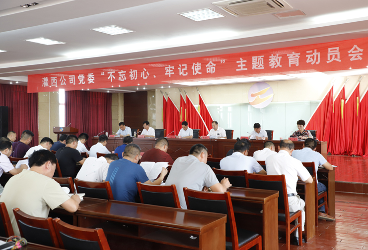 9月24日,灌西公司黨委召開“不忘初心、牢記使命”主題教育動員會議,投資公司黨委書記、董事長、總經(jīng)理李國文作動員講話,要求全公司上下用習近平新時代中國特色社會主義思想武裝頭腦,在以習近平同志為核心的黨中央堅強領導下,在集團公司黨委第四指導組的督促指導下,深入扎實地開展好主題教育,努力推動公司各業(yè)高質高效發(fā)展,以優(yōu)異成績迎接中華人民共和國成立70周年。集團主題教育第四指導組組長王建松及全體成員到會指導。黨委副書記王宏主持會議。常務副總經(jīng)理古浩光等領導班子成員參加會議。