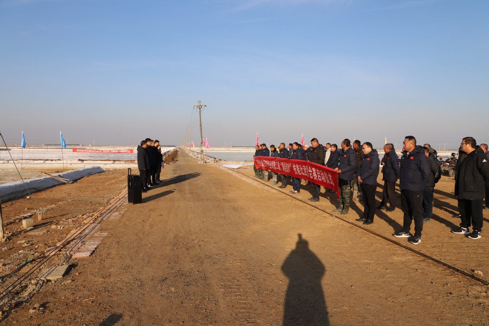 在新河制鹽分公司5班灘頭,總經(jīng)理吳衛(wèi)平作動員講話,裁判長沈玉波宣誓,董事長孫政權(quán)宣布“‘薪火灌筑 匠星西傳’師徒結(jié)對擂臺賽”正式開始!