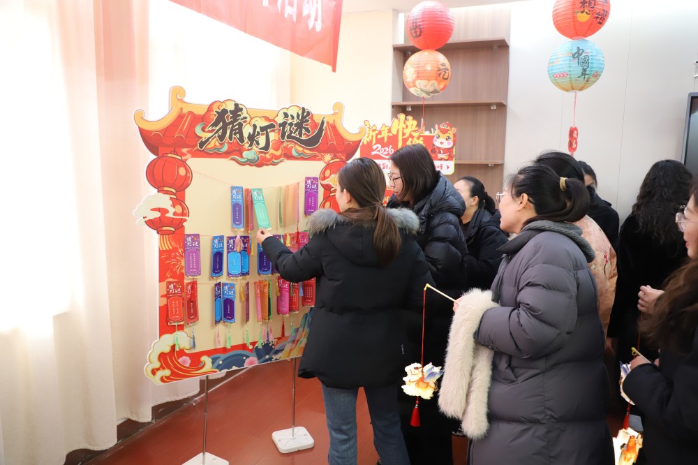 活動(dòng)現(xiàn)場(chǎng)暖意融融、氣氛熱烈。大家圍坐在一起,認(rèn)真裁剪、細(xì)心粘貼、精心裝飾,將彩紙、流蘇、燈架變成一盞盞精致美觀的花燈。指尖流轉(zhuǎn)的是巧思,燈影映照的是笑顏。另一邊,燈謎高懸、妙趣橫生,女職工們或凝神思索,或相互探討,在猜謎的樂(lè)趣中感受傳統(tǒng)文化的韻味。