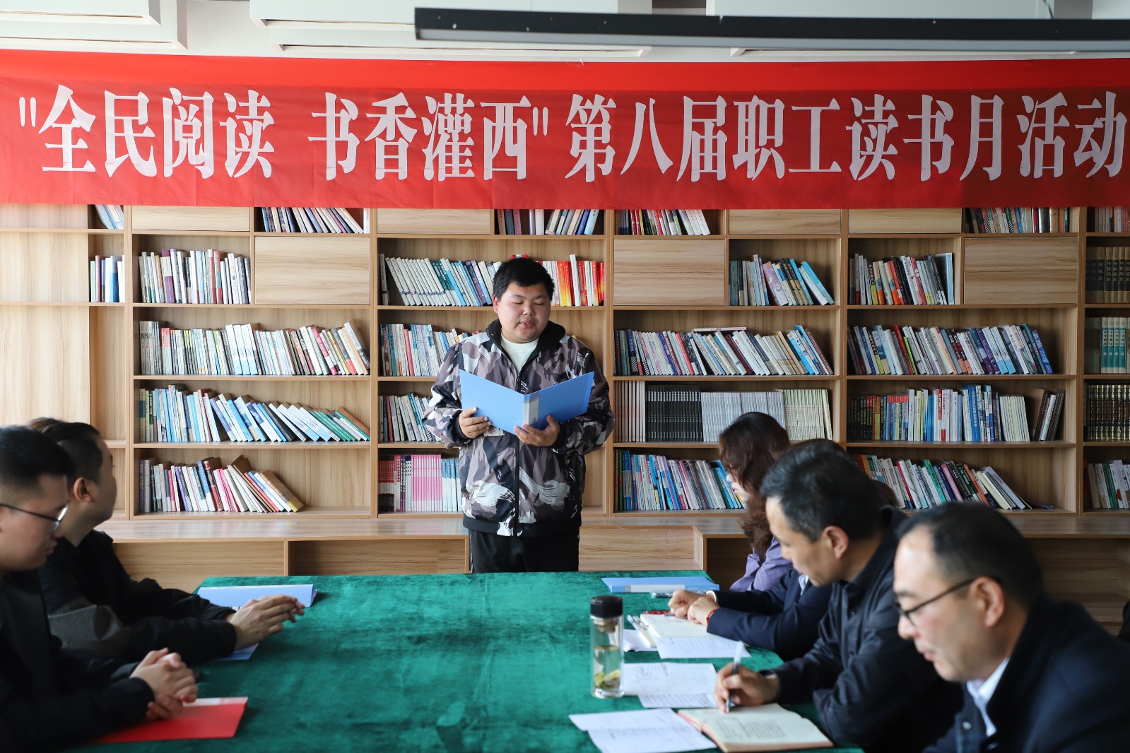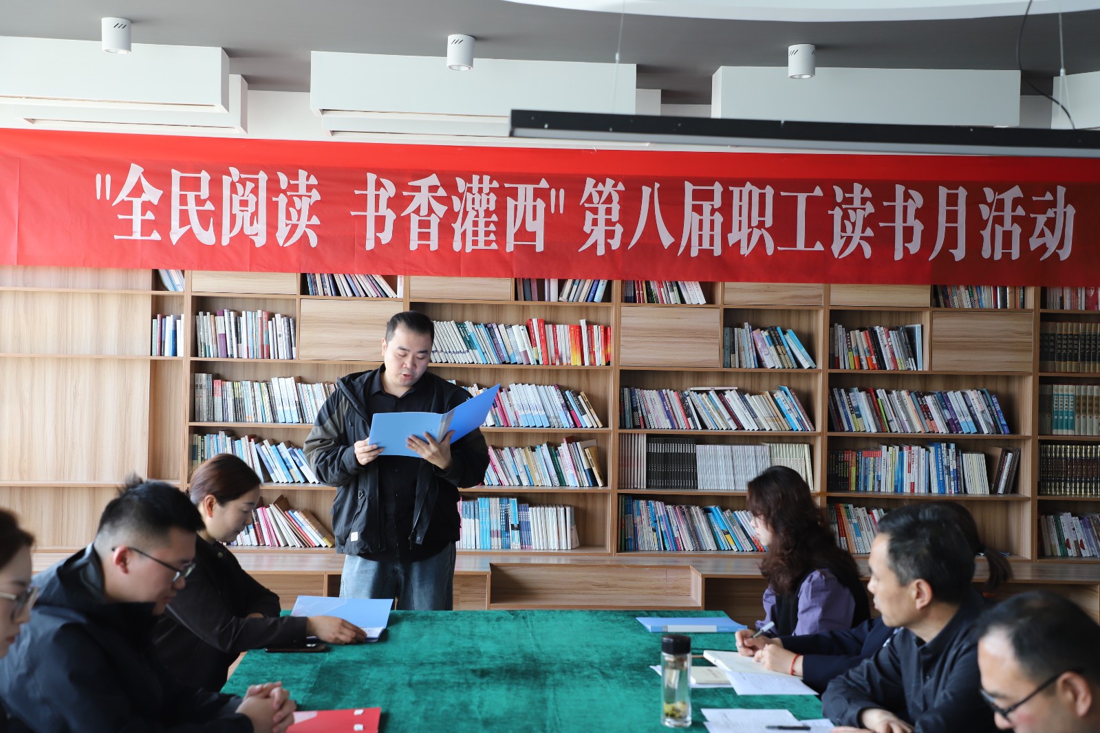 為持續(xù)營造愛讀書、讀好書、善讀書的濃厚氛圍,在世界讀書日來臨之際,4月23日下午,灌西投資公司“全民閱讀?書香灌西”第八屆職工讀書月活動在職工書屋舉辦,以書香浸潤心靈,以文化凝聚力量。公司黨委副書記、工會主席梁永,各單位分會主席及參與誦讀分享人員齊聚一堂,以聲傳情、以書會友,共赴一場浸潤心靈的書香之約。