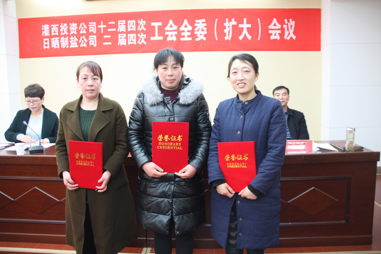 會(huì)議回顧總結(jié)2016年度公司工會(huì)和女工委的主要工作,研究部署2017年主要任務(wù),對(duì)宵洋物流公司等三個(gè)先進(jìn)基層分會(huì)、埒南制鹽分公司等三個(gè)先進(jìn)女職工委員會(huì)和蘇南等四名優(yōu)秀工會(huì)干部進(jìn)行了表彰。黨委書(shū)記王德志在會(huì)上為大家作了熱情洋溢講話。