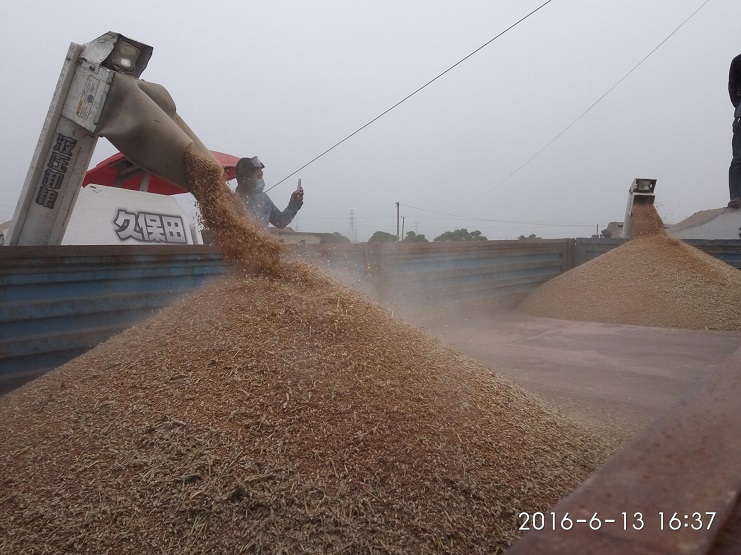 他立即會同農(nóng)業(yè)分公司的全體員工,開赴地頭,搶收小麥。聯(lián)合收割機馬力開足,看著一壟壟小麥被收割完,看著一袋袋小麥被裝運上車,該公司參加搶收人員仍然忙碌著。天黑了,他們打開車燈和手提電燈,頂著高溫、忍受著蚊蟲的叮咬,目標只有一個,在雨到來前一定要完成小麥搶收任務(wù)。