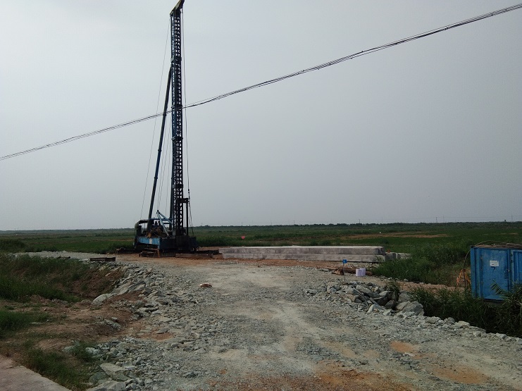 坐落在西旺水產公司農田區(qū)域內的其中的8個風力發(fā)電機建設項目,繼續(xù)協(xié)調、征地、便道鋪建完工后,目前進入樁基施工階段。圖為樁基施工現場(西旺宣)