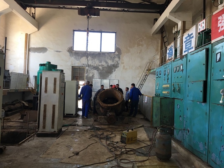 近日高溫高蒸發(fā),全場(chǎng)海水養(yǎng)殖區(qū)海水需求量變大,養(yǎng)殖池塘水位連續(xù)告急,另六圩閘閘站五號(hào)機(jī)泵的水葉老化,出水量變小,導(dǎo)致工作效率降低,不能滿足日常的工作要求。于是副經(jīng)理孫曉波帶領(lǐng)資源管理公司人員配合生產(chǎn)部機(jī)修人員對(duì)六圩閘機(jī)泵進(jìn)行搶修,為了趕在潮水之前爭(zhēng)取把水葉搶修好,大家擼起袖子加油干,有人開(kāi)行車(chē)、有人拿撬棒、有人拿大錘、有人拿特制大扳手、有人拿電焊槍等,大家齊心協(xié)力各有分工,終于完成吊泵和水葉拆卸、安裝等,現(xiàn)場(chǎng)出現(xiàn)一片繁忙的景象。為能夠早日修好機(jī)泵,保證正常供水,十余人起早貪黑在六圩閘站的大機(jī)房努力搶修著。