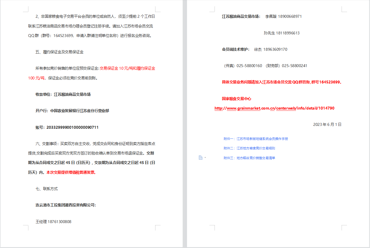 連云港市工投集團(tuán)灌西投資公司稻谷銷售公告