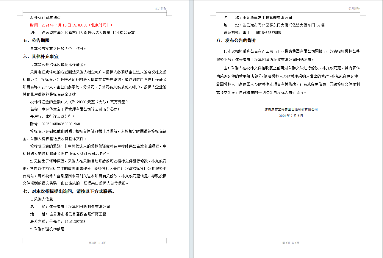 連云港市工投集團(tuán)日曬制鹽有限公司液體氯化鈣(鈣液)采購招標(biāo)公告(二次)