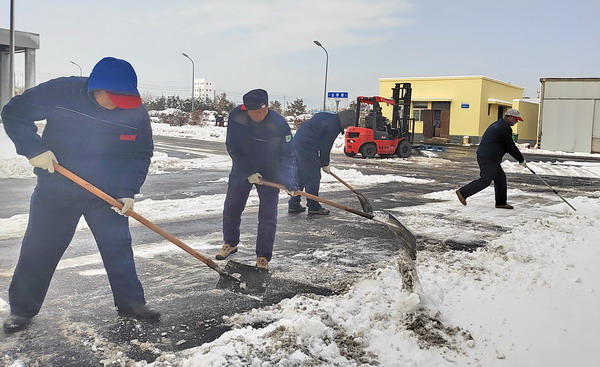 在做好本車間單位“門前三包”掃雪除冰工作的同時,公司員工沒有“自掃門前雪”,積極發(fā)揚志愿服務精神,切實履行社會職責,還清除了周邊廠區(qū)外非機動車道上的積雪積冰。