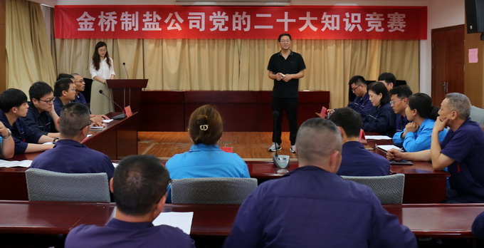 此次競賽是公司慶祝建黨102周年“九個(gè)一”系列活動(dòng)之一,試題涵蓋黨的二十大報(bào)告、《中國共產(chǎn)黨章程(修正案)》、習(xí)近平總書記在黨的二十大閉幕式上的重要講話等內(nèi)容。競賽分為必答題和共答題兩種題型,經(jīng)過三輪的激烈角逐,機(jī)關(guān)支部、加工鹽支部和配送中心支部分獲一二三等獎(jiǎng)。