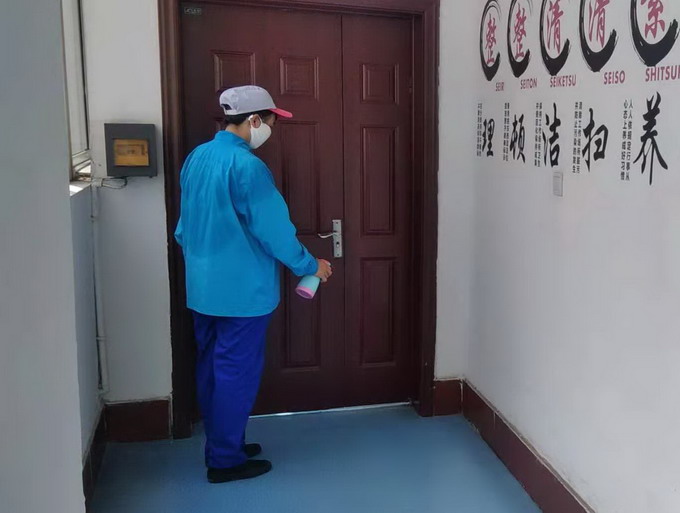 保潔人員每天對(duì)車間公共區(qū)域做好消殺工作