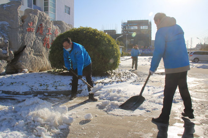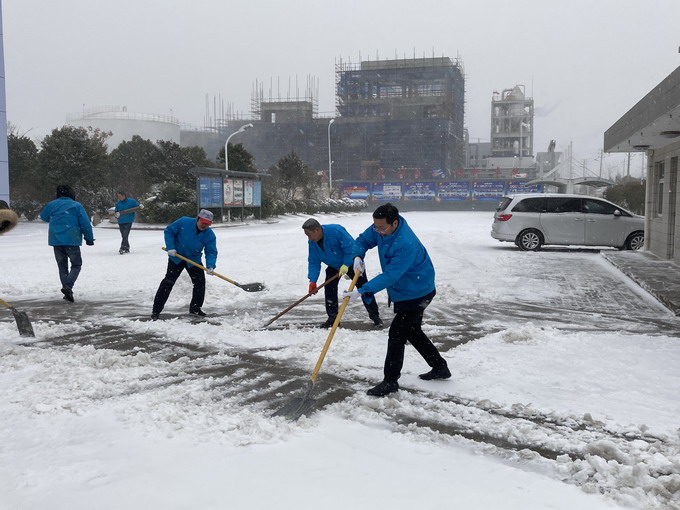 12月29日,連云港市各地普降大雪,氣溫低、積雪厚、道路結(jié)冰,給公司職工的安全出行和生產(chǎn)生活帶來很多不便。29-30日,公司領(lǐng)導(dǎo)朱桂玉、曹開明、田磊、何啟明、邵琴、李忠祥帶領(lǐng)廣大職工群眾開展了義務(wù)掃雪活動。大家冒著風(fēng)雪,不畏嚴(yán)寒,對路面積雪進行清掃,鏟除了廠區(qū)主干道的冰層,保障了公司職工安全出行和安全生產(chǎn)工作的開展。(金宣)