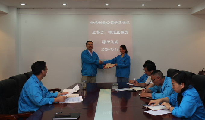 為進(jìn)一步加強(qiáng)黨風(fēng)廉政建設(shè),拓寬監(jiān)督渠道,構(gòu)建黨內(nèi)監(jiān)督、行政監(jiān)察與群眾監(jiān)督相結(jié)合的監(jiān)督制約機(jī)制,7月7日,我公司在二樓會(huì)議室舉行黨風(fēng)黨紀(jì)監(jiān)督員、特邀監(jiān)察員聘任儀式,黨委書(shū)記、董事長(zhǎng)、總經(jīng)理朱桂玉為盧明江、徐元等6名黨風(fēng)黨紀(jì)監(jiān)督員和徐永亮、陳東等6名特邀監(jiān)察員頒發(fā)了聘書(shū)。(金宣 金紀(jì))