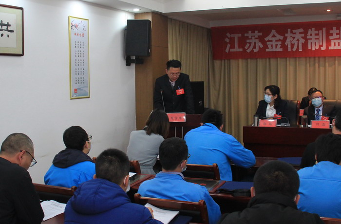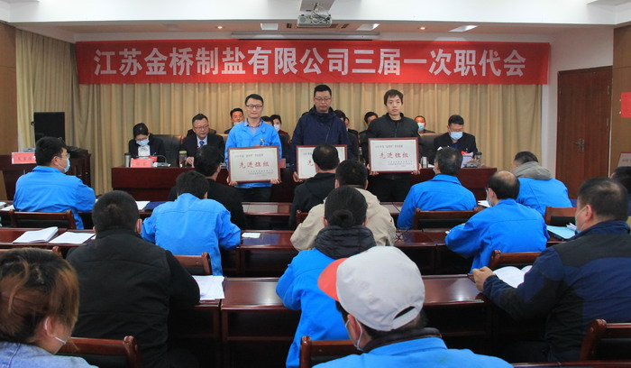 大會(huì)簽訂了《2021年度集體合同》、《2021年度經(jīng)營認(rèn)標(biāo)責(zé)任書》,與會(huì)代表認(rèn)真審議通過了總經(jīng)理工作報(bào)告,通過了大會(huì)決議、有關(guān)方案和意見。加工鹽車間、包裝鹽車間、銷售部依次作了表態(tài)發(fā)言。大會(huì)表彰了第九屆“金橋杯”勞動(dòng)競賽、2020年“大干四季度”勞動(dòng)競賽的先進(jìn)集體和先進(jìn)個(gè)人以及2020年度“金橋工匠”。(金宣)