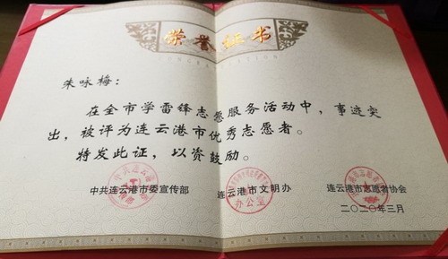 參加疫情防控志愿服務(wù)以來,朱詠梅一天都沒有休息,已為超過2萬名旅客檢測(cè)體溫。由于事跡突出,在全市學(xué)雷鋒志愿服務(wù)活動(dòng)中,被評(píng)為連云港市優(yōu)秀志愿者。工作期間,渴了不敢喝水,餓了就吃泡面,雖然很辛苦,但是她覺得很自豪,她說:“我是一名預(yù)備黨員,也是一名國企職工,比起那些奮戰(zhàn)在疫情防控一線的醫(yī)務(wù)人員,我做的太少了;當(dāng)前,全國人民都投入到新冠肺炎疫情防控工作中來,我只是為防控工作貢獻(xiàn)了自己的微薄的力量,我相信只要我們團(tuán)結(jié)一心、眾志成城,就一定能早日戰(zhàn)勝疫情,早日打贏這場(chǎng)沒有硝煙的戰(zhàn)爭!(凌家佳)