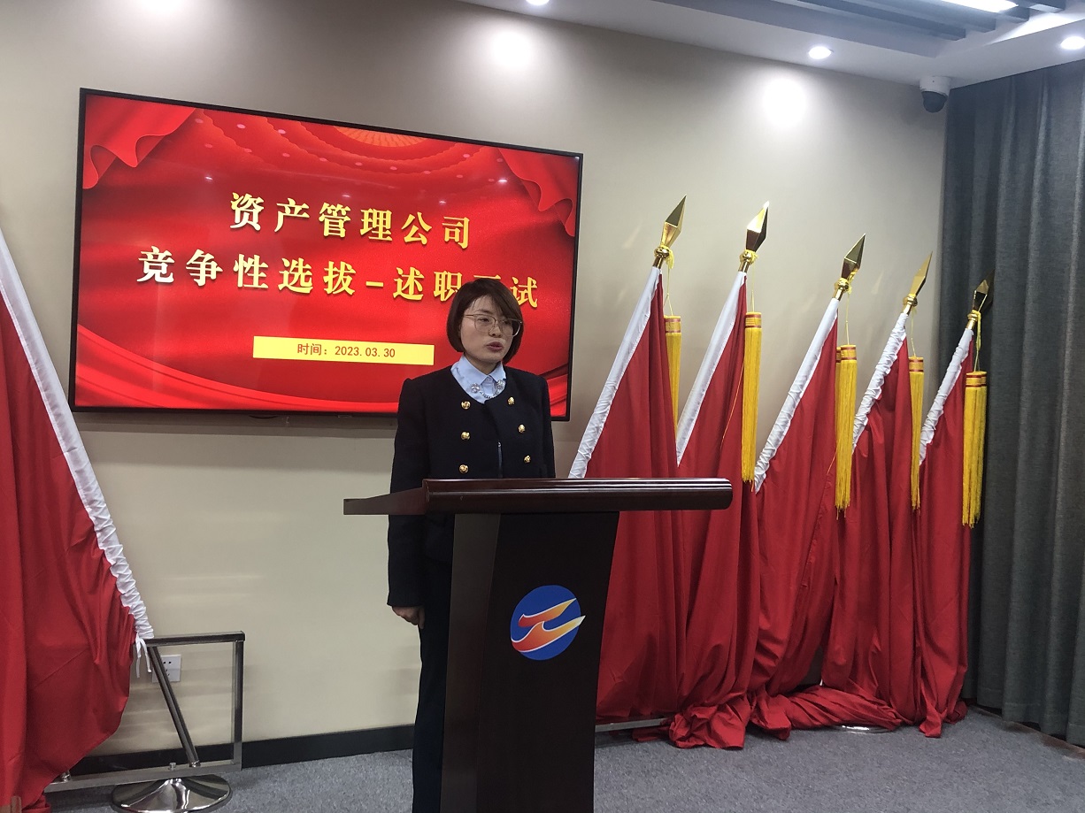 資產(chǎn)管理公司制定了《“競(jìng)爭(zhēng)性選拔”實(shí)施方案》。前期通過(guò)自愿報(bào)名、宣傳動(dòng)員、資格審查等環(huán)節(jié),共有7名候選人進(jìn)入述職面試環(huán)節(jié)。面試采取“演講+答辯”的方式進(jìn)行,既考核競(jìng)聘者的語(yǔ)言表達(dá)、臨場(chǎng)應(yīng)變和邏輯思維等能力,又檢驗(yàn)競(jìng)聘者的業(yè)務(wù)水平和崗位匹配性。競(jìng)聘現(xiàn)場(chǎng),應(yīng)聘人員通過(guò)抽簽輪流進(jìn)行面試,展示各自風(fēng)采,氣氛緊張而又激烈。評(píng)委組根據(jù)競(jìng)聘者臺(tái)上的演講內(nèi)容及答辯情況現(xiàn)場(chǎng)打分。