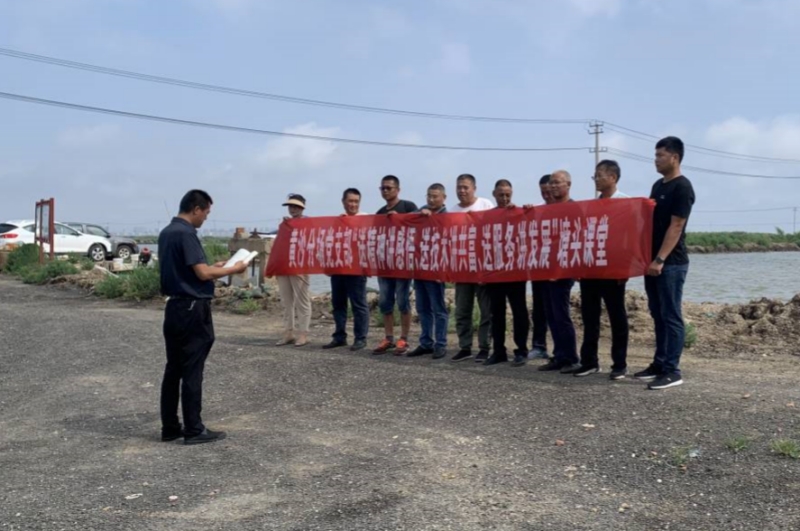 近日,黃沙分場黨支部開展“送精神講感悟、送技術(shù)講共富、送服務(wù)講發(fā)展”塘頭課堂。黨員、養(yǎng)殖戶齊聚塘頭,深入學(xué)習(xí)黨的二十大精神,結(jié)合中秋、國慶“雙節(jié)”,共同探討交流水產(chǎn)品銷售行情,提升養(yǎng)殖整體效益。(盧伯斌)