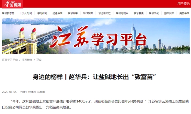 近日,我公司黨員趙華兵事跡登上“學(xué)習(xí)強國”江蘇學(xué)習(xí)平臺,黨建品牌的影響力、引領(lǐng)力和傳播力進一步提升。