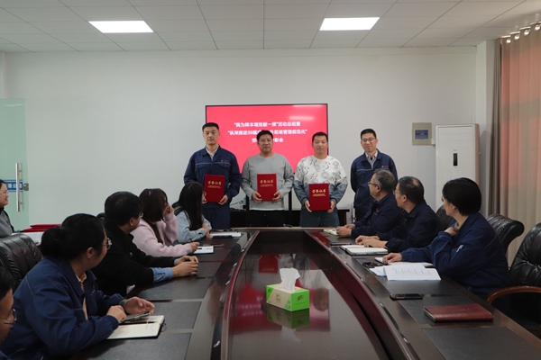 為激勵(lì)全體員工進(jìn)一步干事創(chuàng)業(yè)、奮勇?lián)?dāng),調(diào)動(dòng)廣大職工的生產(chǎn)積極性和創(chuàng)造性,10月23日下午,公司召開“我為降本增效獻(xiàn)一策”活動(dòng)總結(jié)暨“縱深推進(jìn)5S模式、提升現(xiàn)場(chǎng)管理規(guī)范化”勞動(dòng)競(jìng)賽表彰會(huì),公司領(lǐng)導(dǎo)班子全體成員、生產(chǎn)班組長(zhǎng)參加會(huì)議。會(huì)議由公司黨支部副書記、工會(huì)主席王琪主持。