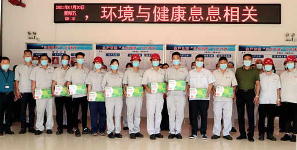 劉承志主席為生產(chǎn)一線員工送來(lái)牛奶、綠豆、白糖、大米等防暑降溫慰問(wèn)品,細(xì)心叮囑要認(rèn)真做好防暑降溫和疫情防控工作,確保平安度過(guò)夏天。(神特宣)