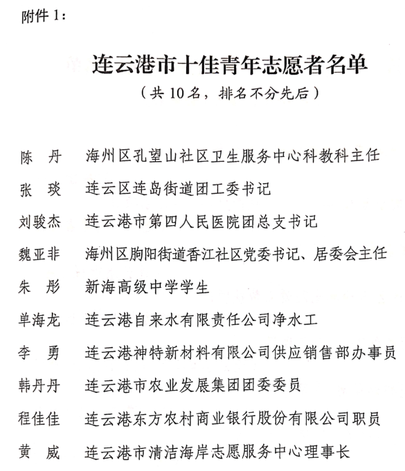 公司員工李勇榮獲“連云港市十佳青年志愿者”稱號