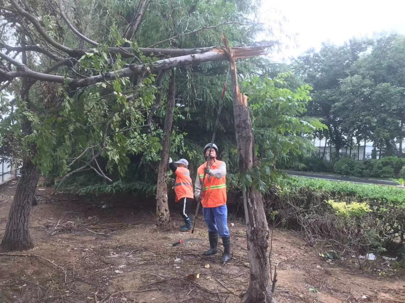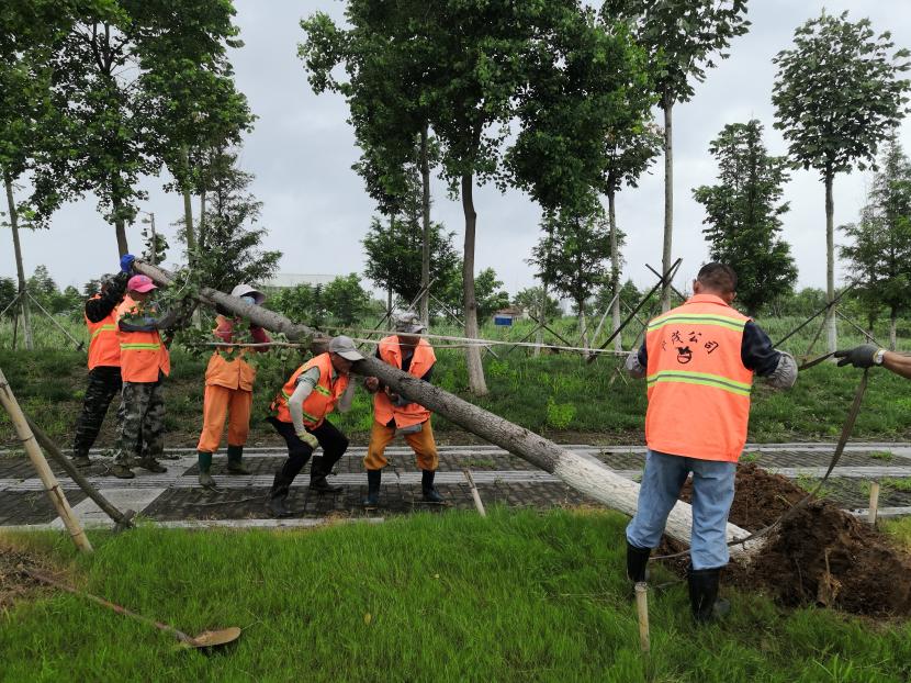 綠化分公司全力以赴筑牢汛期“安全網(wǎng)”,迅速開展應(yīng)急處理,加大現(xiàn)場(chǎng)巡查力度,及時(shí)進(jìn)行排澇清淤、樹木扶正、強(qiáng)基加固,全力排除險(xiǎn)情,保障樹木、苗木安度汛期。截至20日17時(shí),出動(dòng)巡查人員 56人次,巡查車、高架車、貨車等車輛 24車次,扶正移栽倒伏樹木 70 株,修剪斷枝 12株,加固支撐168株。對(duì)云池路、玉竹路、匯晶路等22處路段排澇清淤,及時(shí)消除轄區(qū)內(nèi)安全隱患,保障了市民出行安全,鞏固了城市綠化成果。